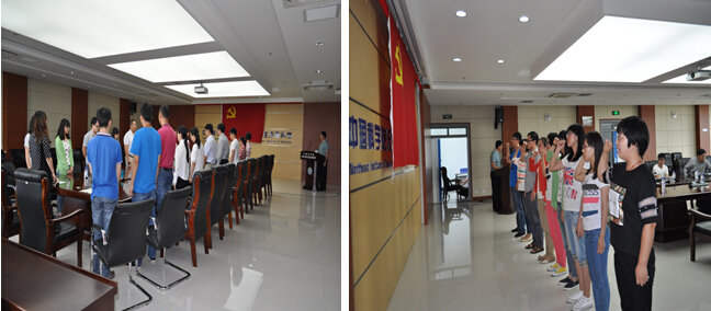 新黨員入黨宣誓既是發(fā)展黨員工作的必要環(huán)節(jié),也是一次深刻的黨性教育,我所每年在七一建黨節(jié)舉行新黨員入黨宣誓儀式,已經(jīng)成為一種慣例。大會在《國際歌》的旋律中拉開了帷幕,邵慶春主任宣讀了本次宣誓的預備黨員名單,新黨員面對黨旗,舉起右拳,在辦公室毛之夏同志的帶領(lǐng)下莊嚴宣誓。