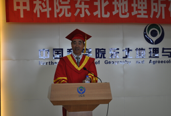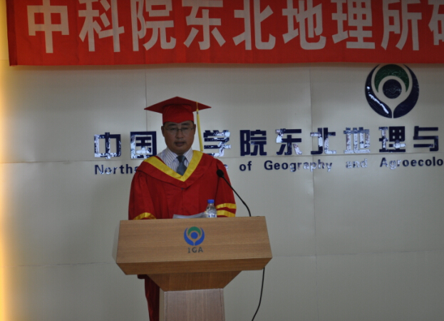 張樹文研究員代表研究生導(dǎo)師在畢業(yè)典禮上發(fā)言。作為研究所資深的優(yōu)秀導(dǎo)師,張樹文研究員培育了更多優(yōu)秀的學(xué)生,他嚴(yán)謹(jǐn)?shù)目蒲凶黠L(fēng)和求實(shí)進(jìn)取的工作態(tài)度,深深的影響了同學(xué)們。他對(duì)畢業(yè)生們的叮囑和期盼,道出了所有導(dǎo)師的心聲。恩師如父,他們更多的是盼望著學(xué)生們能走的更遠(yuǎn),飛的更高!