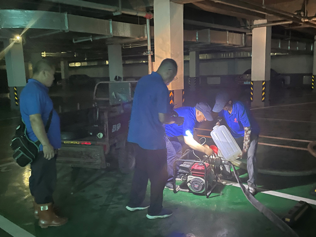 本次模擬演練以我市范圍內(nèi)連降大暴雨,地表積水量大增,導(dǎo)致所區(qū)家屬樓地下車庫積水為演練背景。收到警報(bào)信號(hào)后,參與演練的工作人員迅速按照應(yīng)急預(yù)案進(jìn)行處理,劃分為物資組、搶險(xiǎn)組和疏散組。物資組提前準(zhǔn)備好發(fā)電機(jī)、抽水泵、水桶和防汛沙袋等重要搶險(xiǎn)物資,各小組成員迅速前往搶險(xiǎn)點(diǎn),疏散組及時(shí)通知處于險(xiǎn)情的人員快速抵達(dá)安全地點(diǎn),迅速疏散地下停車場(chǎng)車輛,避免造成車輛損失,并開展細(xì)致的排查工作。搶險(xiǎn)組及時(shí)搬運(yùn)防洪擋板、防洪沙袋至指定位置,減少雨水倒灌損失,全力開展防洪搶險(xiǎn)工作。整個(gè)演練過程組織有序、分工到位、有條不紊,參演工作人員配合密切、操作流暢,確保演練活動(dòng)順利完成,達(dá)到預(yù)期效果。