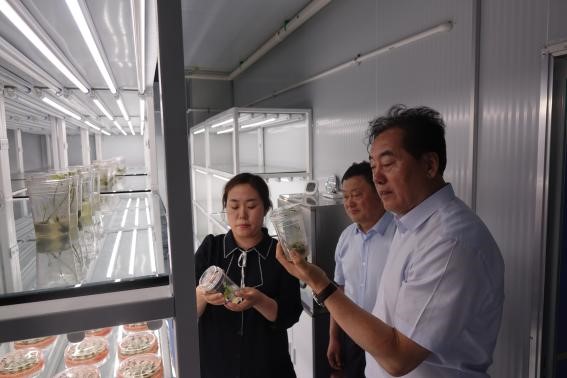 在長(zhǎng)春綜合農(nóng)業(yè)試驗(yàn)站,站長(zhǎng)冷建田介紹了臺(tái)站的基本情況,詳細(xì)匯報(bào)了試驗(yàn)站圍繞“黑土糧倉(cāng)”科技會(huì)戰(zhàn)開展的4種模式、9項(xiàng)技術(shù)科技成果展示情況;在種質(zhì)資源樓,調(diào)研了高通量植物表型組平臺(tái)與分子設(shè)計(jì)育種工作;在研究所展館,聽取了研究所歷史沿革、學(xué)科布局、承擔(dān)任務(wù)、科技平臺(tái)、人才隊(duì)伍、黨建工作及發(fā)展規(guī)劃等情況的介紹。