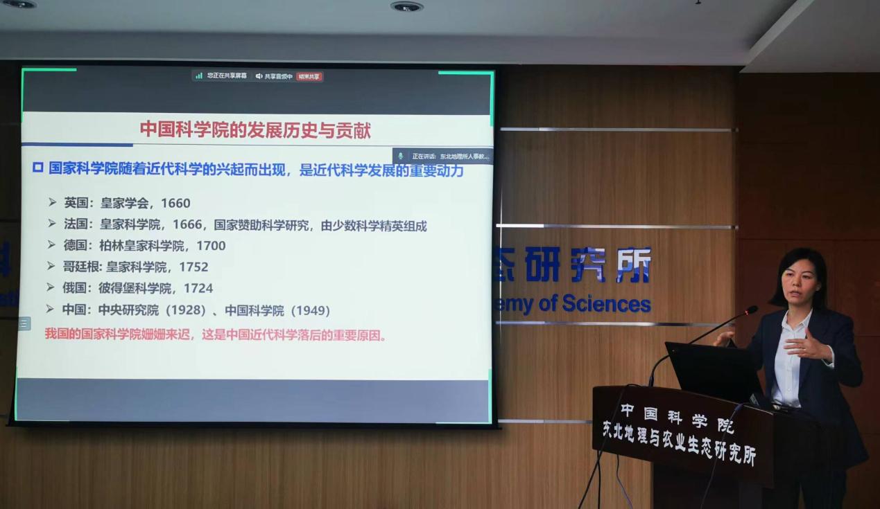 所務(wù)委員、濕地重點(diǎn)實(shí)驗(yàn)室常務(wù)副主任祝惠以“弘揚(yáng)科學(xué)家精神 逐科技強(qiáng)國之夢”為題做專題報(bào)告。她介紹了中國科學(xué)院的發(fā)展歷史與貢獻(xiàn)、科學(xué)家精神內(nèi)涵、在黑土地上傳承科學(xué)家精神的歷程,詳細(xì)解析了科學(xué)家精神的豐富內(nèi)涵和弘揚(yáng)科學(xué)家精神的時(shí)代背景與重要性,希望新職工持續(xù)努力學(xué)習(xí)、忠誠擔(dān)當(dāng),踐行科學(xué)報(bào)國之志,傳承科學(xué)家精神,賡續(xù)黑土地上的錦繡華章。