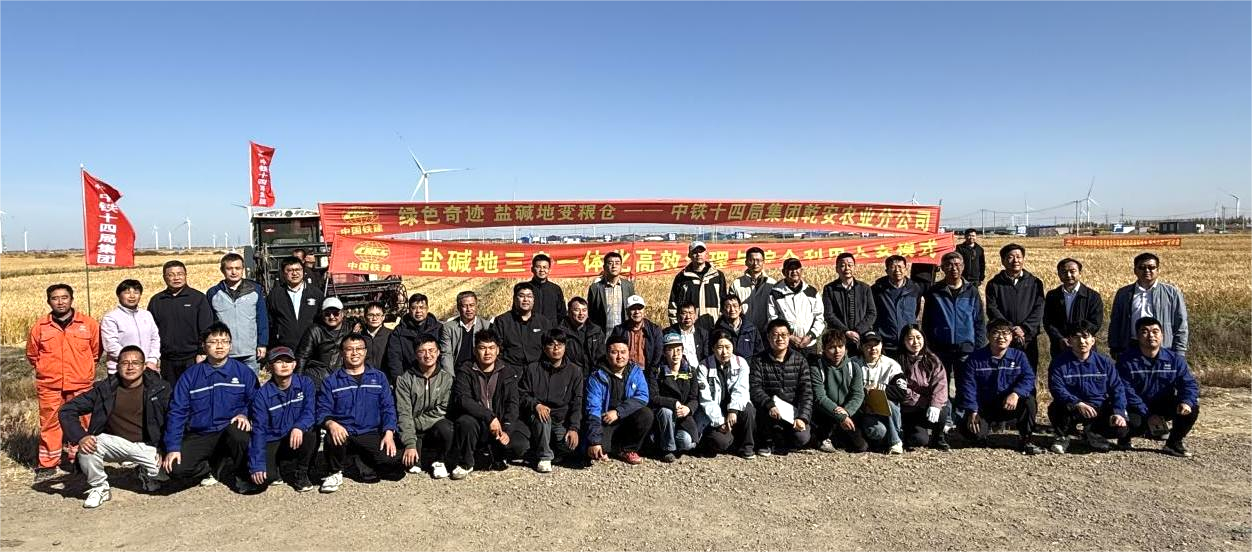 為進一步推進鹽堿地“三良一體化”高效治理與綜合利用大安模式的推廣應用,吉林大安農田生態(tài)系統(tǒng)國家野外科學觀測研究站團隊與中鐵十四局集團有限公司聯(lián)合于乾安水字鎮(zhèn)鹽堿地治理項目區(qū)建立試驗示范基地。10月11日,大安站與中鐵十四局乾安分公司聯(lián)合在乾安示范基地成功召開了新墾鹽堿地“三良一體化”高效治理與綜合利用專家測產現(xiàn)場觀摩會。