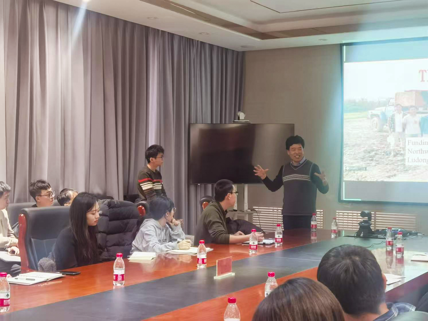 司炳成教授以“相較于淺根植物,深根系植物如何影響地下水補給?如何消耗深層土壤水?能不能增加地下碳儲存?”三個問題開篇,詳細講解了淺根系與深根系植被下地下水補給的控制因子,探討了地下水同位素與補給機制,介紹了深層土壤水與碳的交換過程。司炳成教授還展示了基于林齡與深層土壤水分虧缺之間的邏輯增長關(guān)系模型,用于估算區(qū)域尺度人工林的深層土壤水分虧缺,并介紹了基于深層土壤水分虧缺與深層根系碳儲量之間的Logistic關(guān)系模型,估算了區(qū)域尺度人工林的深層根系碳儲量。司炳成教授的報告深入淺出,極具指導(dǎo)意義,激發(fā)了所在領(lǐng)域科研人員和研究生的思考。與會師生與司炳成教授展開了深入交流,收獲了寶貴的學(xué)術(shù)啟發(fā)。