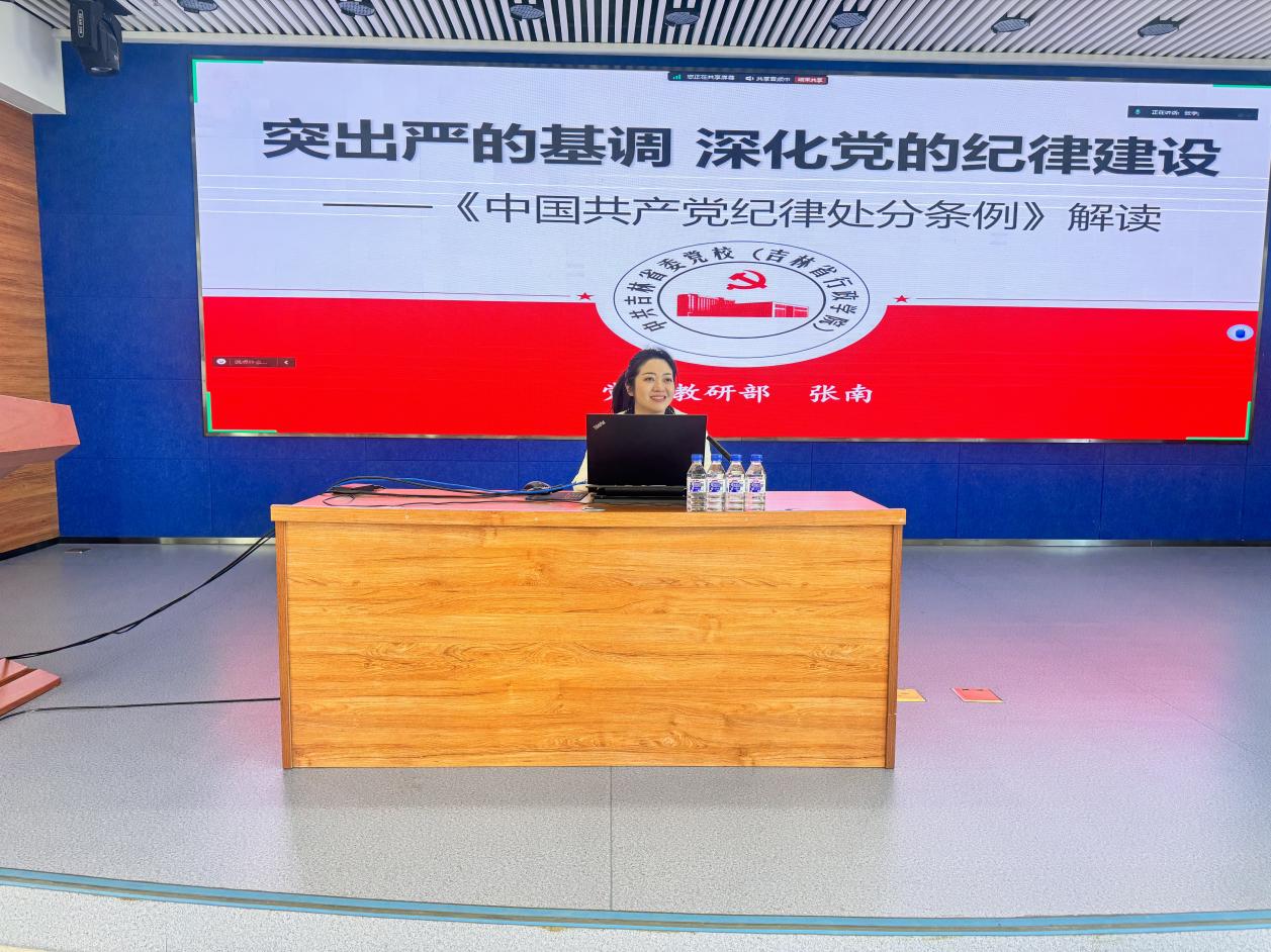 中共吉林省委黨校黨建教研部副主任張南副教授以《突出嚴(yán)的基調(diào),深化黨的紀(jì)律建設(shè)》為題作報(bào)告,系統(tǒng)闡述了《中國共產(chǎn)黨紀(jì)律處分條例》主要內(nèi)容,詳細(xì)解讀了新增和修訂的條款。報(bào)告具有很強(qiáng)的針對性和指導(dǎo)性,對于幫助紀(jì)檢委員理解把握《條例》的內(nèi)涵要義以及今后學(xué)好、用好《條例》,自覺增強(qiáng)黨性修養(yǎng),錘煉紀(jì)律作風(fēng)有著重要的作用。