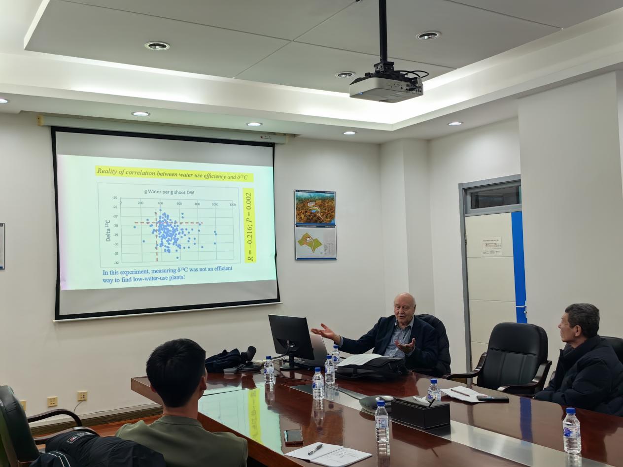報(bào)告會(huì)上,Cory Matthew教授分別從植物分蘗大小和密度之間的補(bǔ)償、種子頭為下一季嫩芽提供營養(yǎng)、植物分蘗形態(tài)影響根系生長季節(jié)性、植物耐旱性等四個(gè)方面介紹了他的研究成果和最新的科研進(jìn)展。報(bào)告結(jié)束后,Cory Matthew教授與參會(huì)師生進(jìn)行了深入的互動(dòng)交流,會(huì)場(chǎng)氣氛熱烈。報(bào)告激發(fā)了大家的科研興趣,開拓了科研視野,與會(huì)師生獲益匪淺。