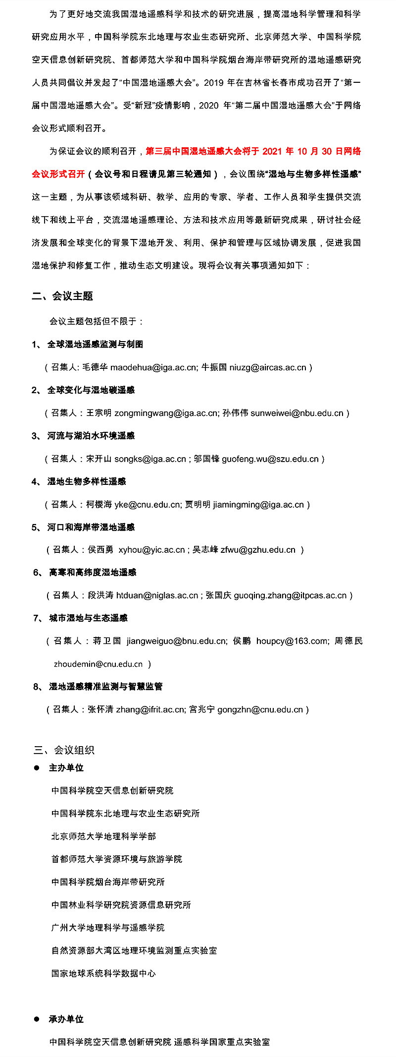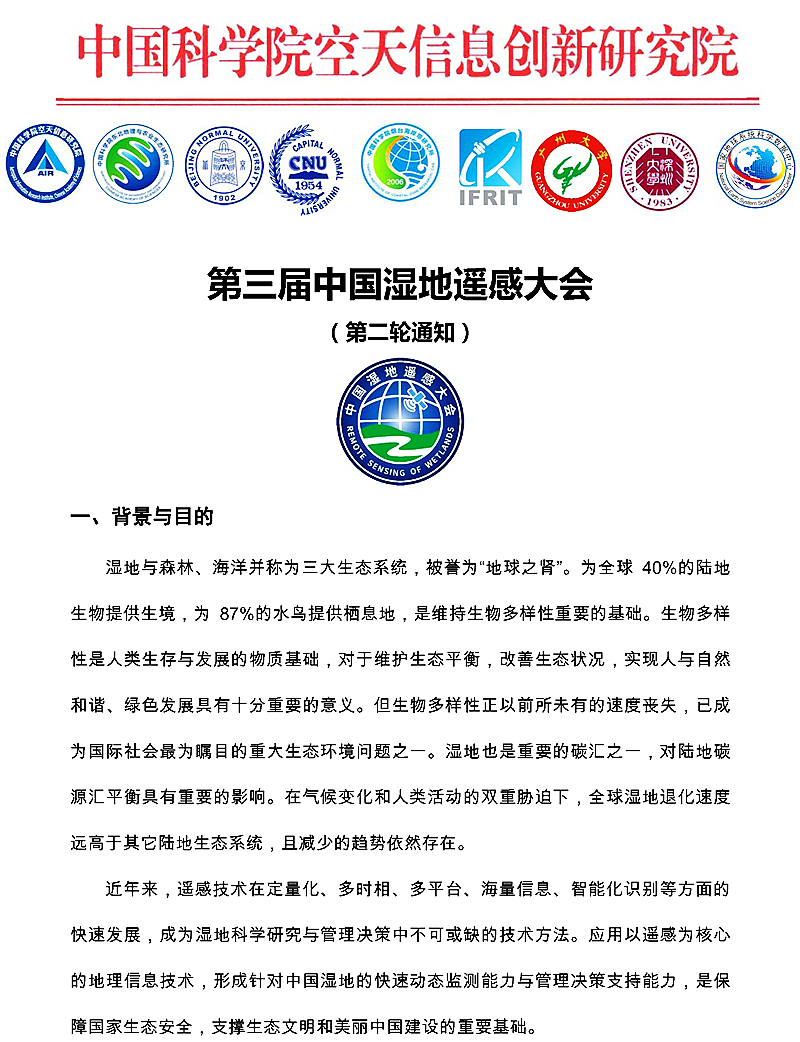 第三屆中國(guó)濕地遙感大會(huì)(第二輪通知)