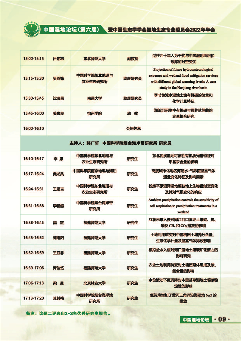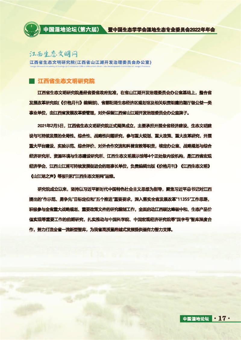 中國(guó)濕地論壇(第六屆)暨中國(guó)生態(tài)學(xué)學(xué)會(huì)濕地生態(tài)專業(yè)委員會(huì)2022年年會(huì) 會(huì)議手冊(cè)