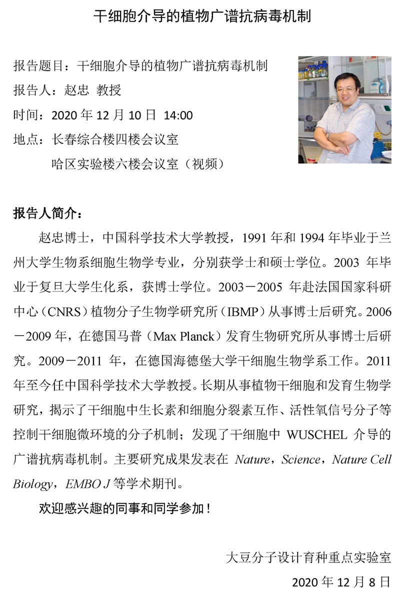 植物干細(xì)胞介導(dǎo)的抗病毒免疫機(jī)制-趙忠 教授