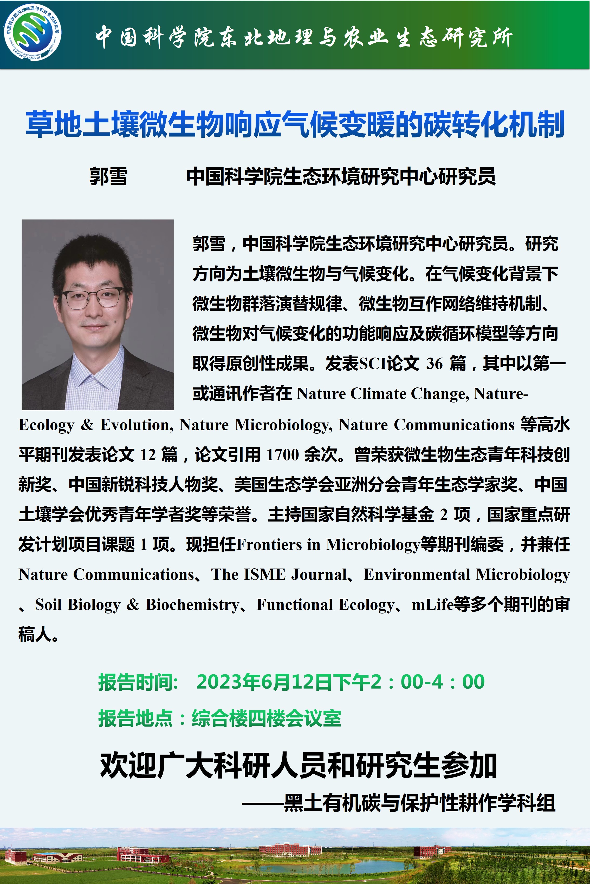 草地土壤微生物響應氣候變暖的碳轉化機制-郭雪 研究員