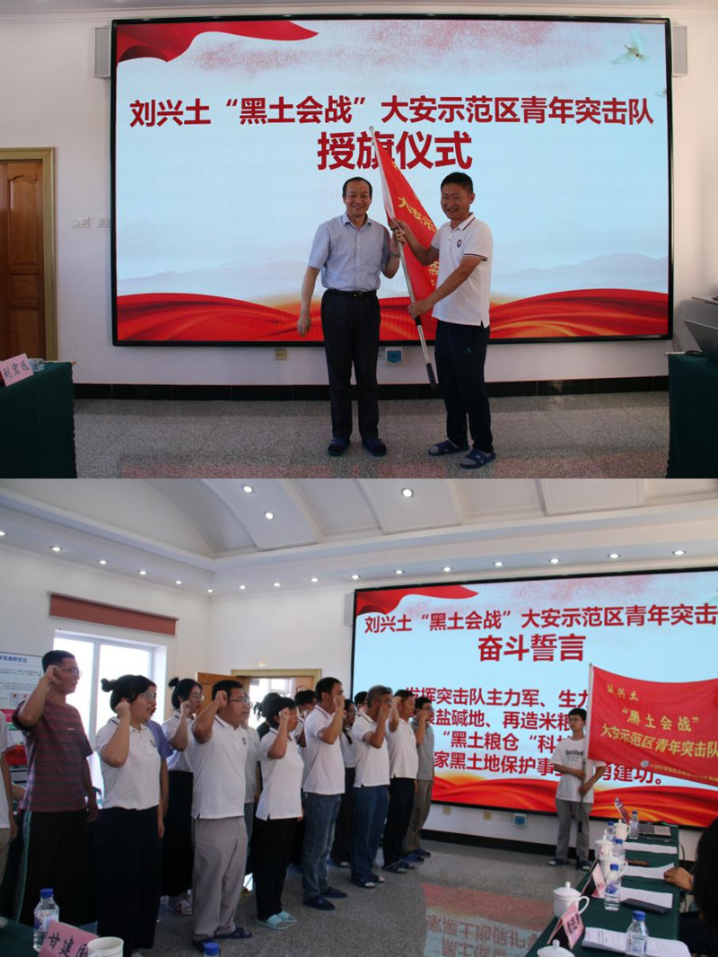 座談會上舉辦了以老科學家命名的突擊隊授旗儀式。文波龍副研究員簡要介紹劉興土院士先進事跡,李和風向劉興土“黑土會戰”大安示范區青年突擊隊授旗,青年突擊隊進行奮斗誓言宣誓,錚錚誓言,體現了新一代的科研工作者以老科學家精神為引領,緊密圍繞國家重大戰略需求奮勇建功的信心和決心。