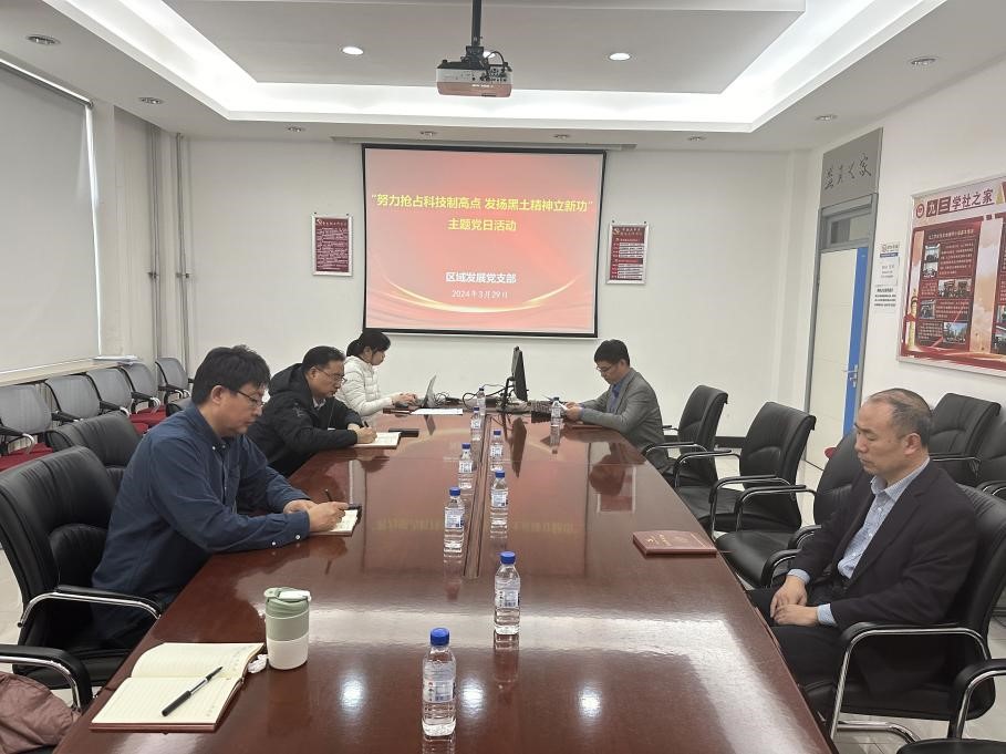 3月29日,區(qū)域發(fā)展黨支部組織開展“努力搶占科技制高點 發(fā)揚黑土精神立新功”主題黨日活動,活動由支部書記劉文新主持。