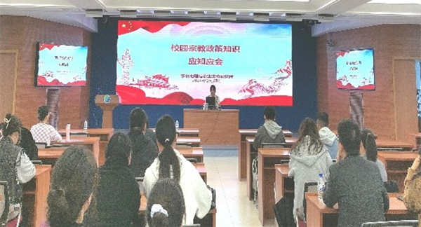隨后,為加強全體黨員、團員對馬克思主義宗教觀和宗教政策法規的學習教育,深化對教育和宗教分離原則的認識,研究生第二黨支部黨員桑孌領學了《校園宗教政策知識應知應會20問》、《校園宗教政策知識與實務問答》。